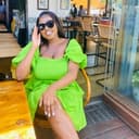 A woman in a green dress sits at a wooden table under a parasol, looking at her phone while holding a glass of white wine. The background shows a scenic view with mountains and a clear sky. More about La Parada →