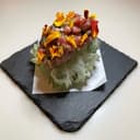 a little jalapeno for peppers. It's going to be a mix of our shrimp calamari and scallops. Perfection. You don't do those nugget things, bread things.